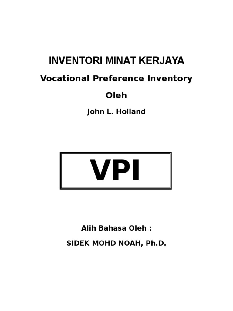 Related : Inventori Minat Kerjaya Holland - Inventori minat kerjaya vocational preference inventory vpi edisi 85 arahan:.