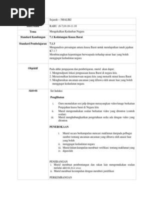 Dskp Kssm Sejarah Tingkatan 4 Dan 5 from image.slidesharecdn.com Kedaulatan ini lah yang merupakan salah satu unsur pembeda antara negara dengan organisasi. Unsur pembentuk negara yang dimaksud ialah pemerintah yang berdaulat. Semasa duduk dibangku sekolah dasar kita pasti menerima pelajaran pkn atau pendidikan kewarganegaraan. Kedaulatan merupakan sebuah kekuasaan tertinggi dalam sebuah negara dan kedaulatan inilah yang mengatur jalannya negara. Pemerintah yang berdaulat ini yang nantinya akan memegang semua kekuasaan atas penduduk sekaligus wilayah yang dimiliki oleh suatu negara. Setiap negara tentu mempunyai unsur, dan unsur inilah yang akan membuat negara menjadi satu kesatuan yang utuh. Ancaman dalaman terhadap kedaulatan malaysia ancaman dalaman yang dihadapi oleh malaysia terdiri daripada gerakan fanatism politik, agama dan kaum. 4 kedatangan kuasa barat secara k7.1.6 menghuraikan kepentingan bekerjasama sistematik.