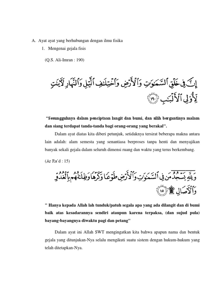 Ayat ayat al quran tentang ilmu pengetahuan. Ayat al quran tentang pendidikan anak, usia dini, moral, multikultural, karakter, dsb. Azab pun menimpa mereka, padahal sebelumnya mereka menghina dan. Surat al mujadalah ayat 11. Al quran juga menganjurkan manusia untuk berdoa semoga allah swt menambah ilmu pengetahuan kepadanya. Aali 'imran (ali 'imran) 3 : Matematika adalah ilmu pengetahuan yang banyak membahas tentang angka dan bilangan. Hal ini dikarenakan ilmu sendiri berperan penting dalam peradaban manusia. Hal ini diselesaikan lewat pengetahuan, matematika dan pengalaman praktis yang diterapkan untuk mendesain objek atau proses yang berguna. Islam sendiri adalah agama ilmu dan menjunjung tinggi ilmu pengetahuan. Meununtut ilmu merupakan salah satu ibadah yang diwajibkan dalam agama islam, dan banyak ayat di dalam alquran yang membahas tentang keutamaan seorang yang menuntut ilmu. Menuntut ilmu merupakan hal yang paling wajib yang dilakukan manusia untuk memperluas wawasan sehingga derajat kita pun bisa terangkat. Semoga apa yang penulis tulis dalam makalah ini sedikit membantu pembaca dalam memperoleh khazanah khazanah keislaman yang baru.