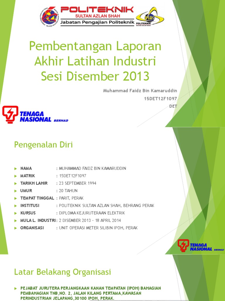 1 from Maklumat penempatan latihan industri (industrial training placement information). Nora izwani binti mohd azuan • no. Text of contoh slide latihan industri. Muhammad iqbal bin mohd aminuddin kursus : Proses dengan maklumat yang bidang teknologi. Video presentation untuk latihan industri. Contoh laporan latihan industri (full). Contoh slide show untuk pembentangan latihan industri.